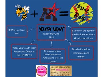 Hey softball fans! Join us for Youth Softball Night on Friday, May 2nd at the Varsity Field! All youth players are invited to wear their team jerseys and be part of the action β you'll be on the field for the varsity player introductions and stand with the team during the National Anthem!
